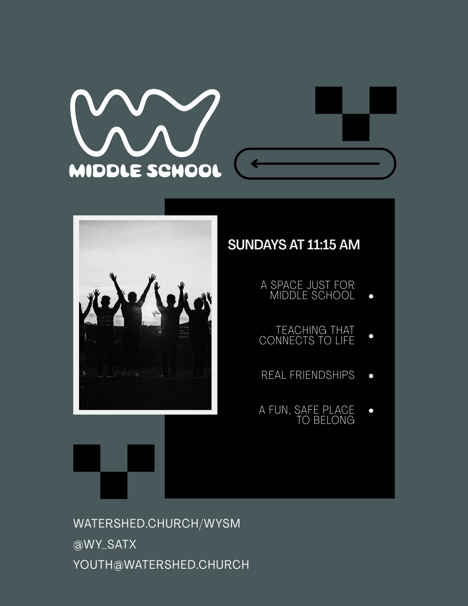 WY Middle School focuses on helping students grow in their faith, build friendships, and feel known and welcomed each week.